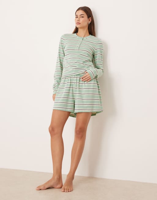 ASOS DESIGN mix & match pajama set in sage & blue stripes