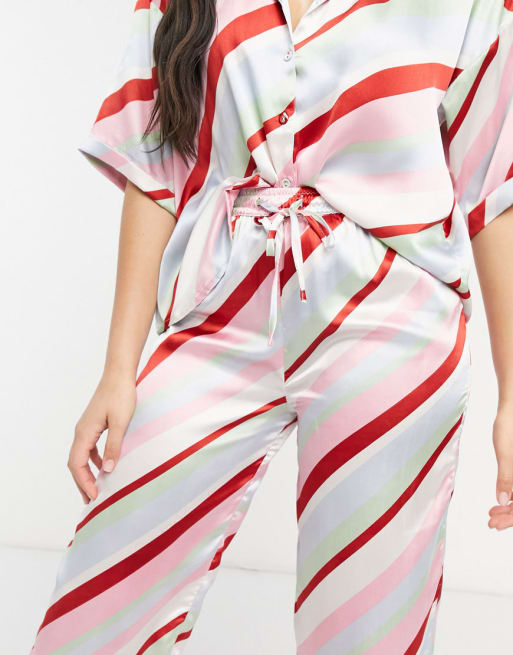 ASOS DESIGN mix & match satin candy stripe pajama shirt & pant set in multi
