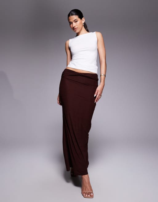 ASOS DESIGN mix & match twisted waist fishtail maxi skirt in chocolate