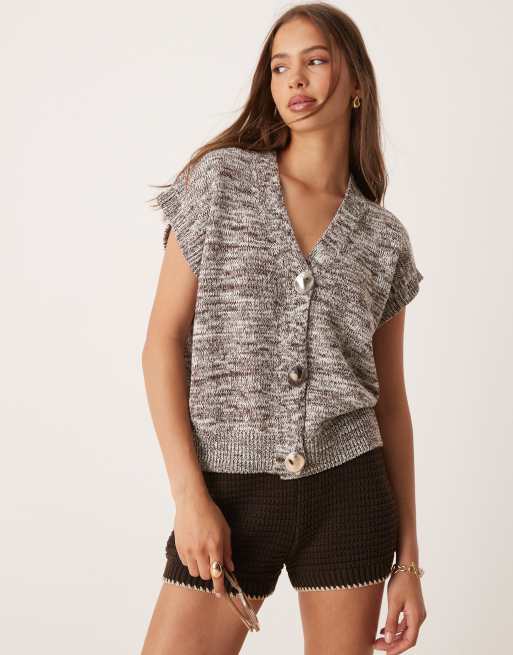 ASOS DESIGN multi-ply silver button knit tank in cream and brown