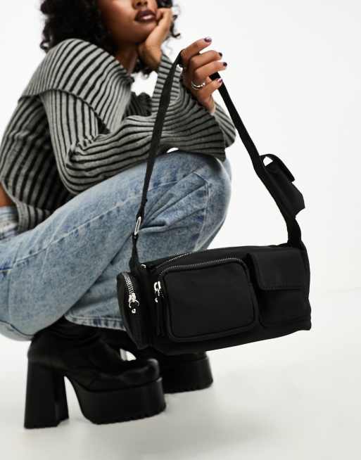 ASOS DESIGN multi pocket shoulder bag in nylon in black