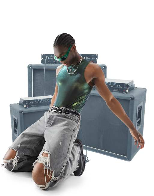 ASOS DESIGN muscle bodysuit in green metallic