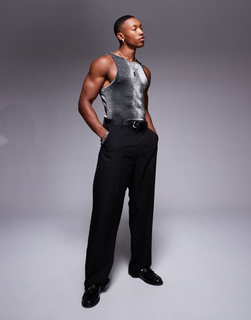 ASOS DESIGN muscle fit high scoop tank in glitter fabric