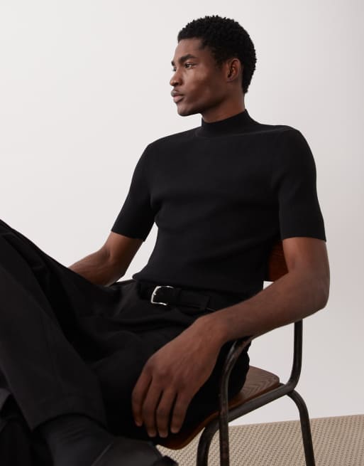 ASOS DESIGN muscle fit knit rib turtleneck T-shirt in black cotton blend