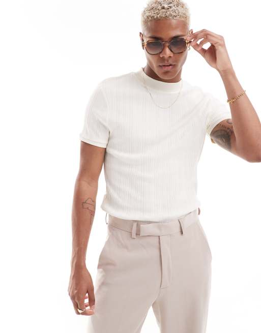 ASOS DESIGN muscle fit ribbed T-shirt in ecru