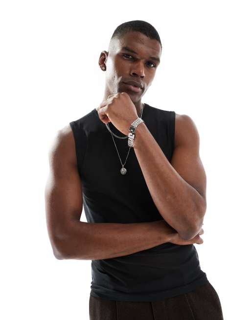 ASOS DESIGN muscle fit tank top in black mesh
