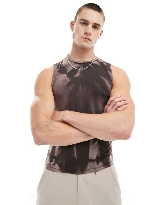 ASOS DESIGN muscle fit tank top in washed brown