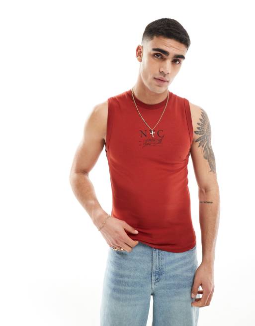 ASOS DESIGN muscle fit tank top with chest print in red
