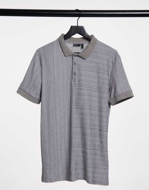 ASOS DESIGN muscle polo shirt in gray spliced textured fabric