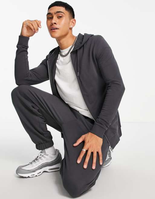ASOS DESIGN muscle zip up hoodie in black - GRAY