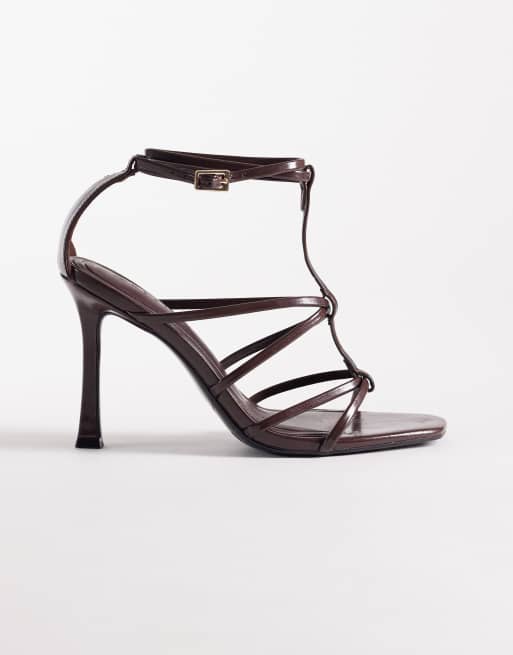 ASOS DESIGN Natalia caged t-bar high heel sandals in chocolate