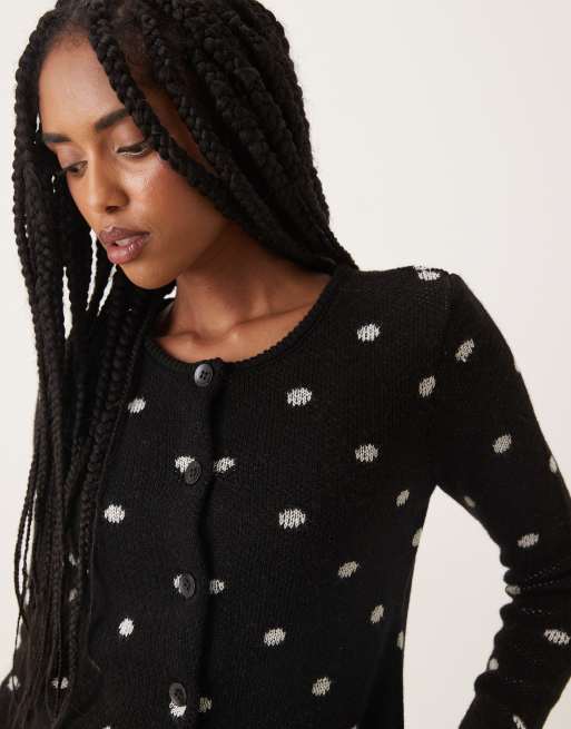 ASOS DESIGN neat fit cardigan in polka dot in mono