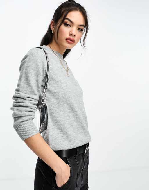 ASOS DESIGN neat fit crew neck sweater in gray