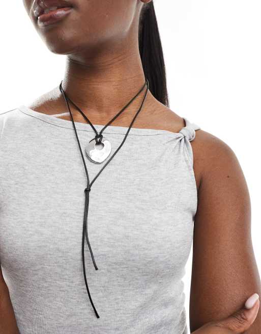 ASOS DESIGN necklace with multirow molten pendant and cord design in silver tone