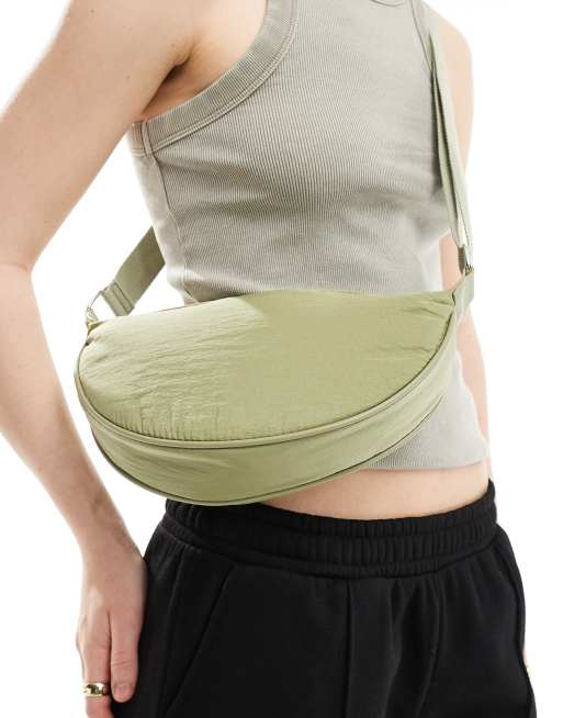 ASOS DESIGN nylon sling crossbody bag in light khaki
