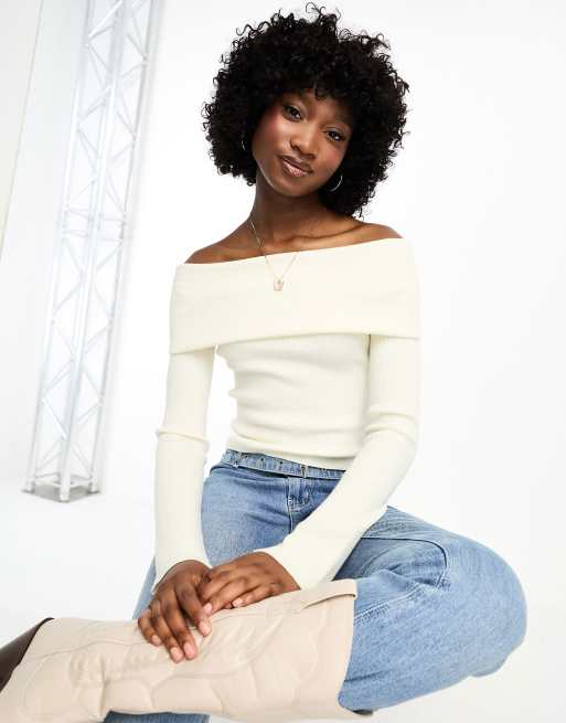ASOS DESIGN off shoulder sweater in rib in cream