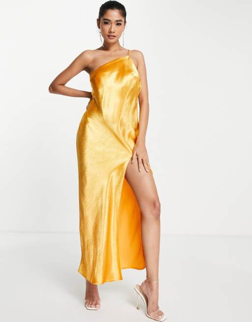 ASOS DESIGN one shoulder midaxi dress in satin with drape back