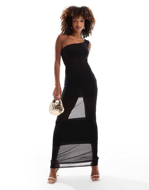 ASOS DESIGN one shoulder with panels maxi dress in black