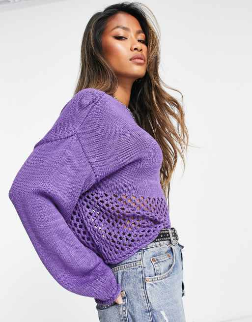ASOS DESIGN open stitch hem sweater in purple