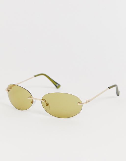 ASOS DESIGN oval rimless sunglasses with olive lenses