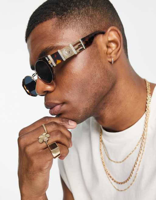ASOS DESIGN oval sunglasses in tortoiseshell and gold with smoke lens