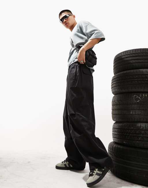 ASOS DESIGN oversized baggy parachute pants in black