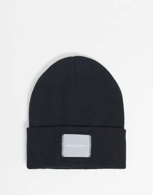 ASOS DESIGN oversized beanie in black with woven label