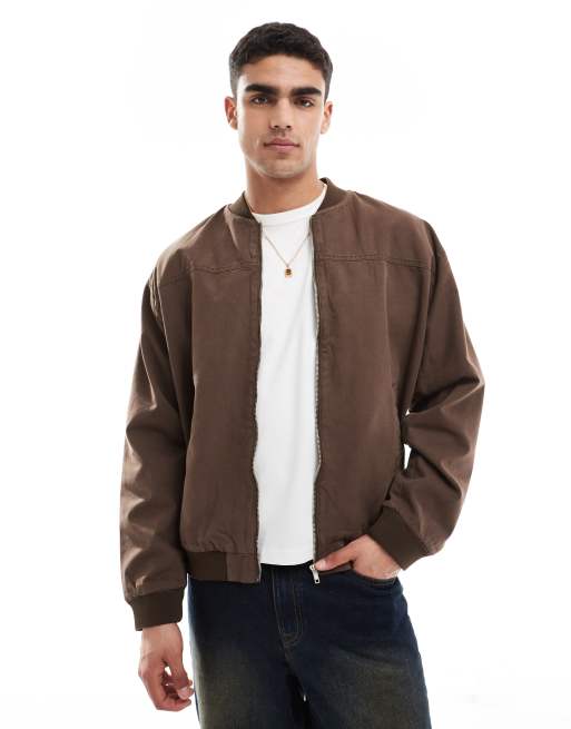 ASOS DESIGN oversized bomber jacket in washed brown