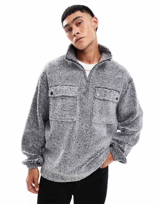 ASOS DESIGN oversized borg sweatshirt with quarter zip in gray heather