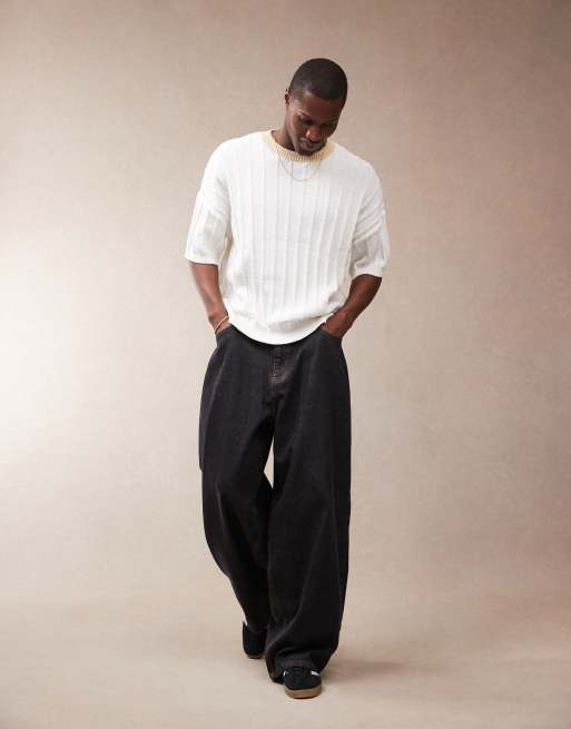ASOS DESIGN oversized boxy fit heavyweight texture ribbed knit crew neck T-shirt in ecru