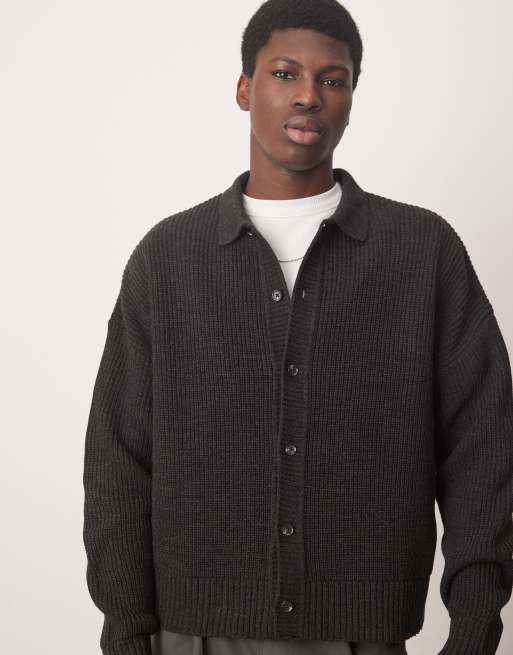 ASOS DESIGN oversized boxy fit knitted ribbed collar cardigan in charcoal heather