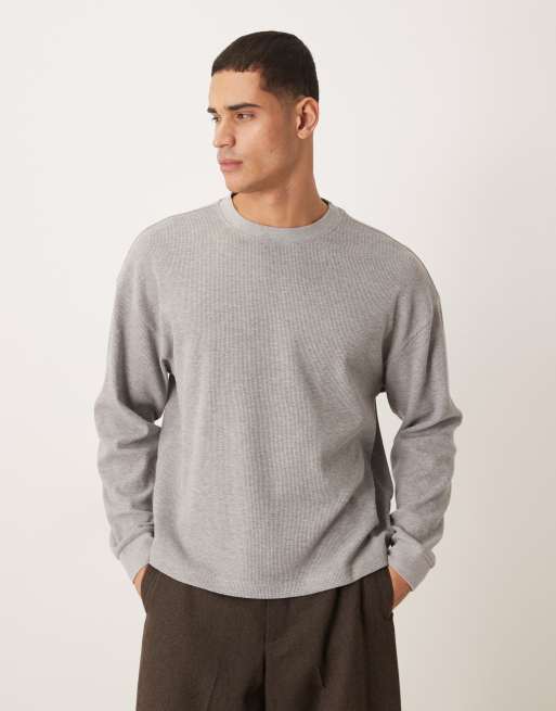 ASOS DESIGN oversized boxy long sleeve T-shirt in gray heather waffle