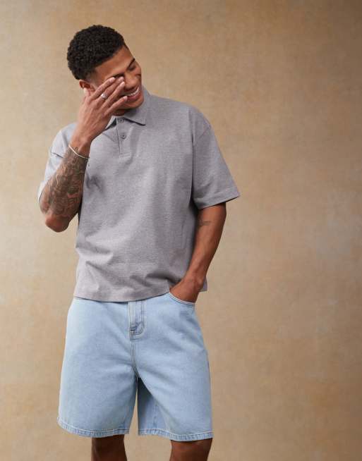 ASOS DESIGN oversized boxy polo gray heather