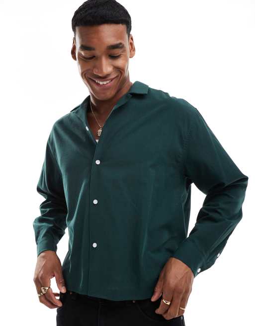 ASOS DESIGN oversized boxy shirt with revere collar in green