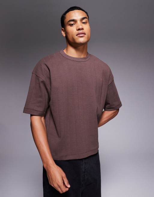 ASOS DESIGN oversized boxy textured ribbed t-shirt in brown