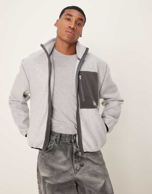 ASOS DESIGN oversized boxy zip through jacket with contrast pocket in gray fleece