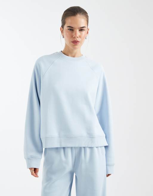 ASOS DESIGN oversized brushback sweatshirt with raglan detail in baby blue