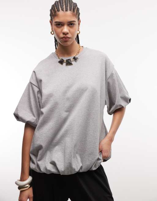 ASOS DESIGN oversized bubble hem t-shirt in heather gray