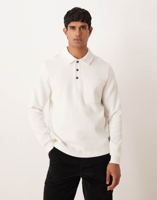 ASOS DESIGN oversized buttons polo shirt with pocket in ecru