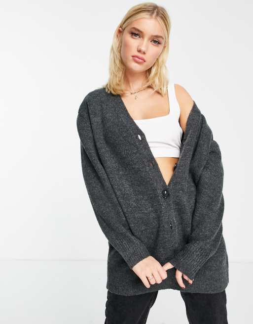 ASOS DESIGN oversized cardigan with button through in dark gray