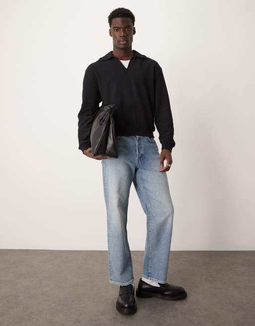 ASOS DESIGN oversized collar sweatshirt in black