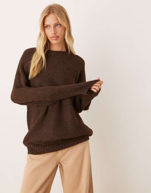 ASOS DESIGN oversized crew neck cocoon fluffy sweater in chocolate