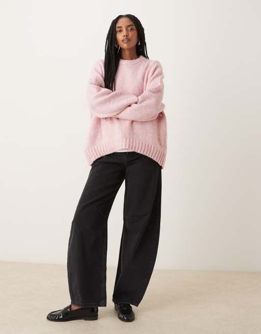 ASOS DESIGN oversized crew neck sweater with curved hem in pink