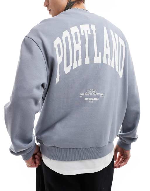 ASOS DESIGN oversized crew neck sweatshirt with back city print in gray