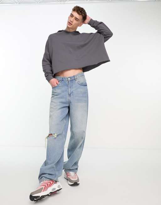 ASOS DESIGN oversized cropped hoodie in washed black