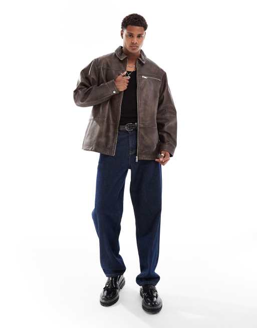 ASOS DESIGN oversized cut and sew motocross harrington jacket in brown