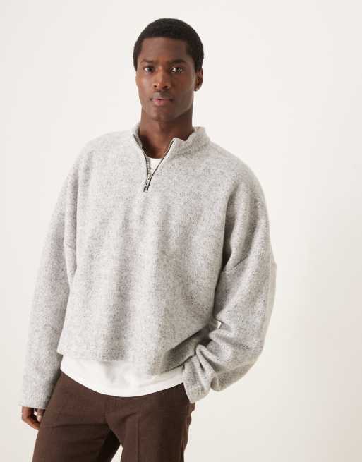ASOS DESIGN oversized drop shoulder cropped sweatshirt with funnel neck in brushed gray heather