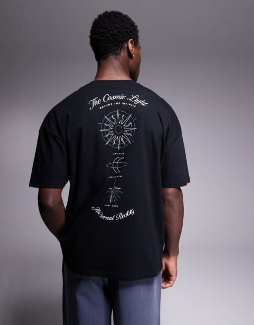 ASOS DESIGN oversized dropped shoulder t-shirt with celestial graphic in black
