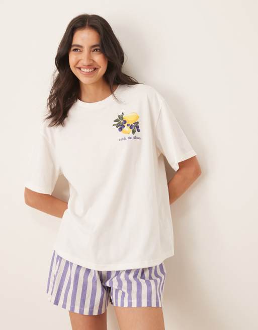 ASOS DESIGN oversized graphic tee & woven shorts pajama set in lemon print