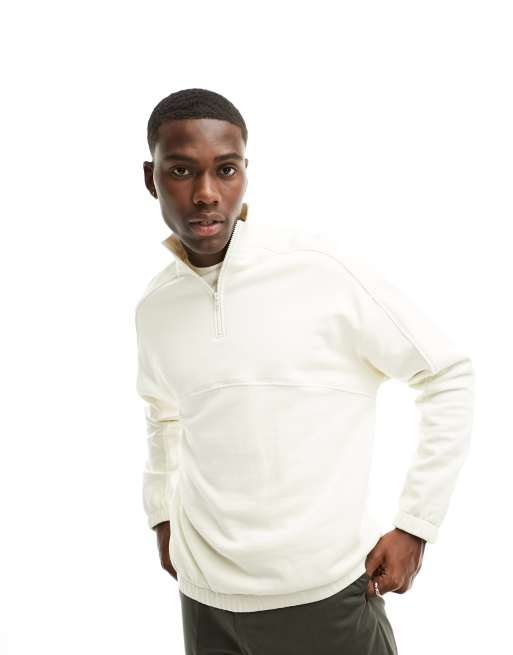 ASOS DESIGN oversized half zip sweatshirt with piping in beige